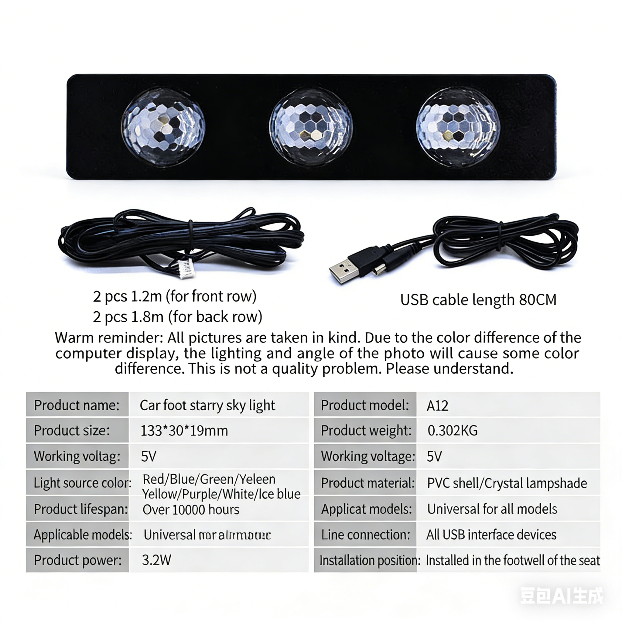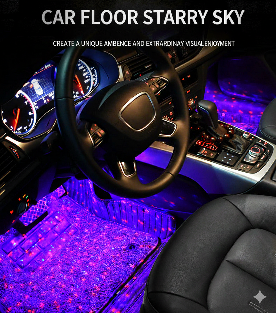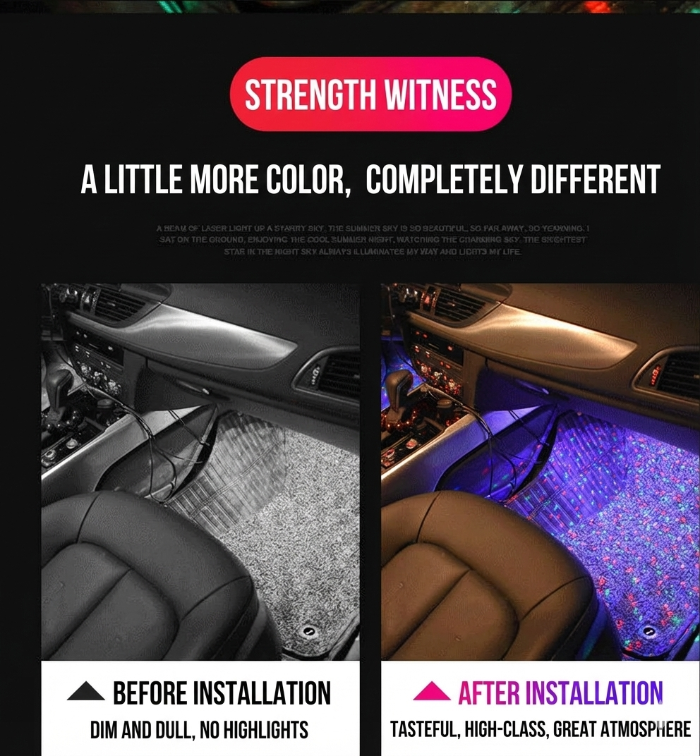 The interior of the car has been modified with seven-color voice-controlled LED decorative ambient lights, and the starry sky ambient lights under the feet are used in a one-to-four arrangement